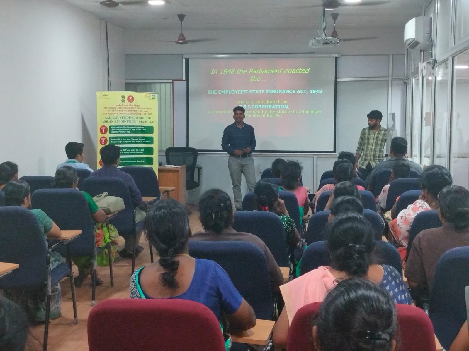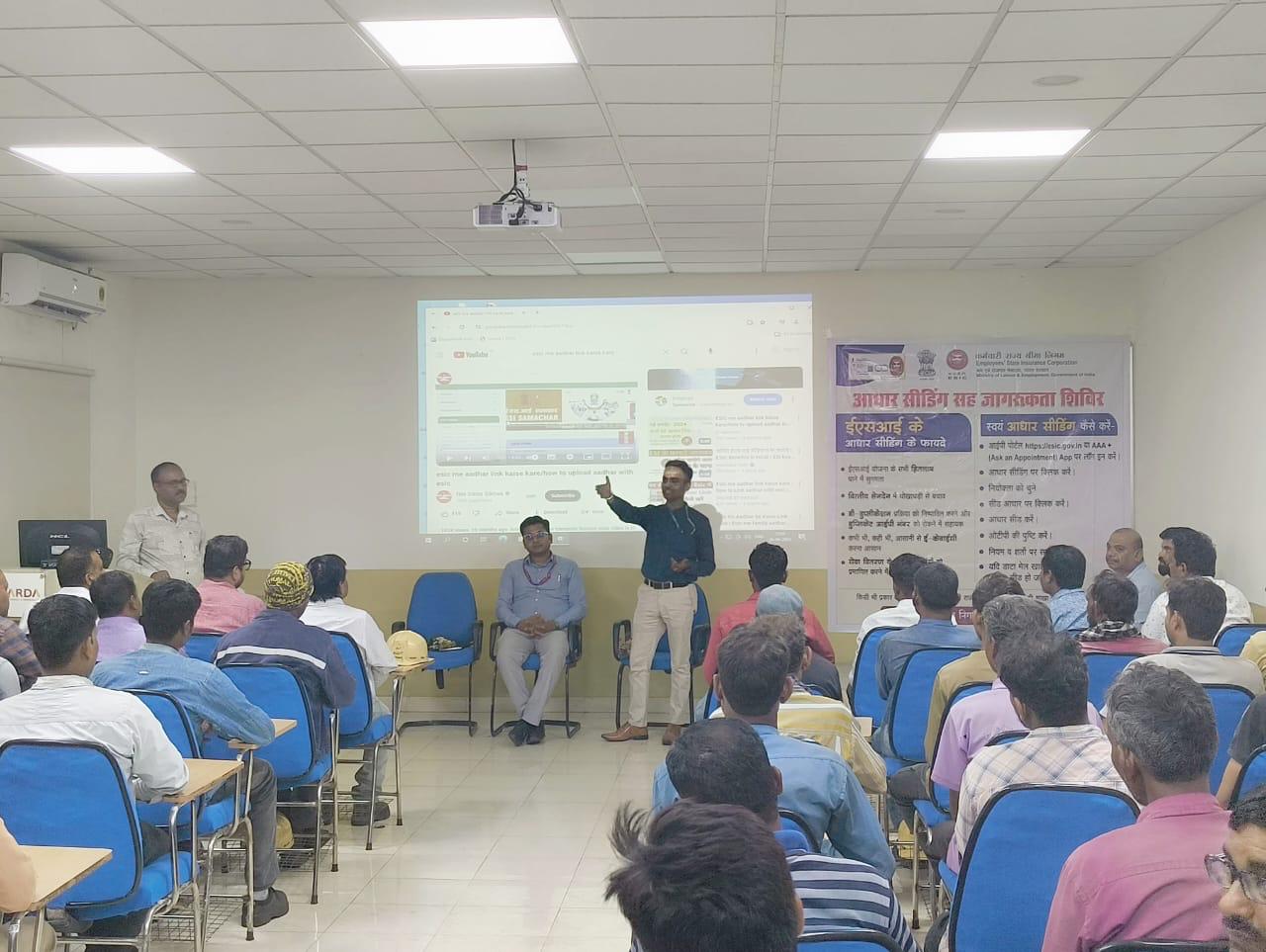 An awareness program conducted at Delhi International Airport Limited DIAL wherein they were informed about ESIC schemes, benefits of Adhaar Seeding and why coverage under ESIC is essential for Employers and Employees.