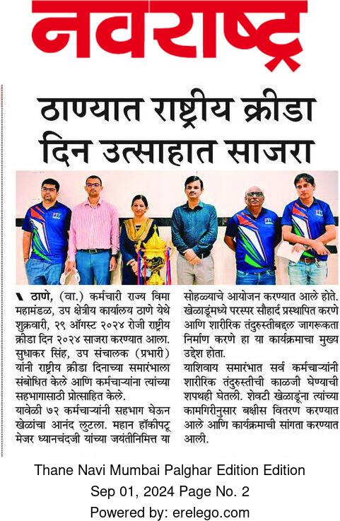 कर्मचारी राज्य बीमा निगम द्वारा राष्ट्रीय खेल दिवस के उपलक्ष्य में विभिन्न खेल गतिविधियों का आयोजन किया गया।