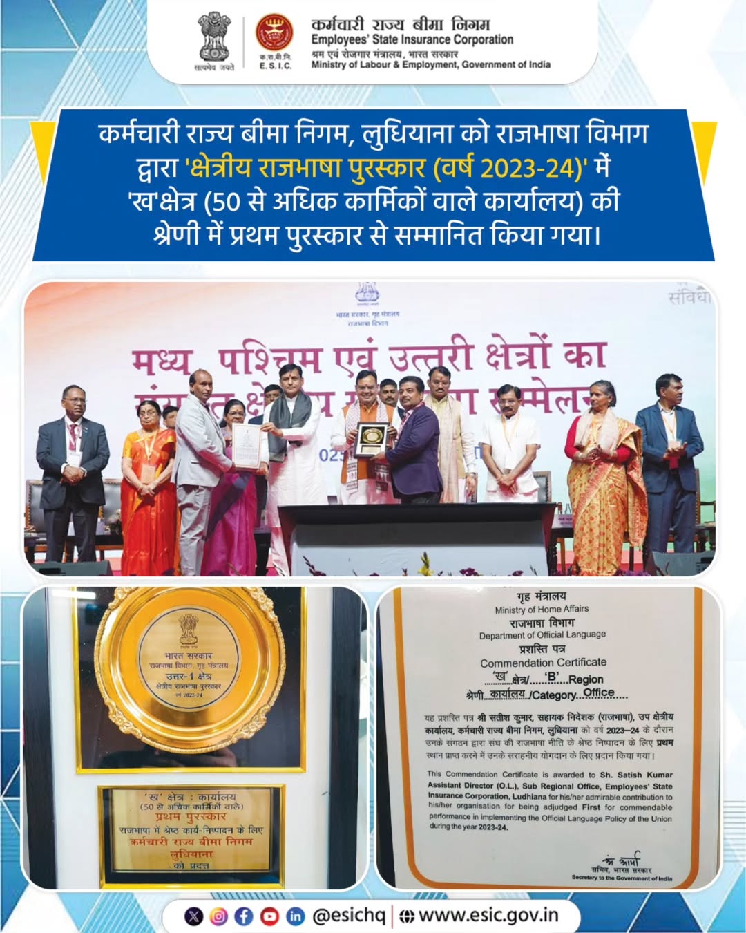 ESIC bagged “ISSA Vision Zero 2023” Award at the 23rd World Congress on Safety and Health at Work in Sydney, Australia